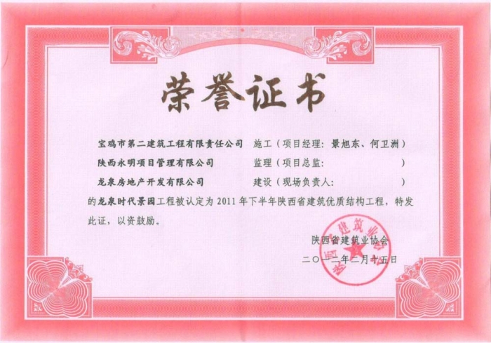 2011年省優(yōu)質(zhì)結(jié)構(gòu)(龍泉時代)