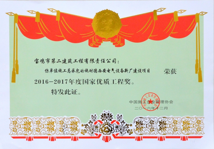 國家優(yōu)質(zhì)工程獎 (施耐德西安電氣設(shè)備新廠建設(shè)項(xiàng)目)