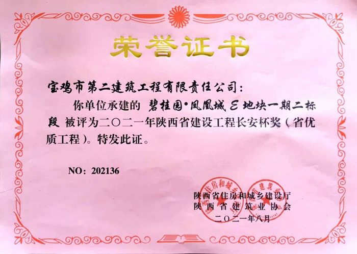 2021年陜西省建設(shè)工程長安杯獎(碧桂園?鳳凰城E地塊一期二標段)