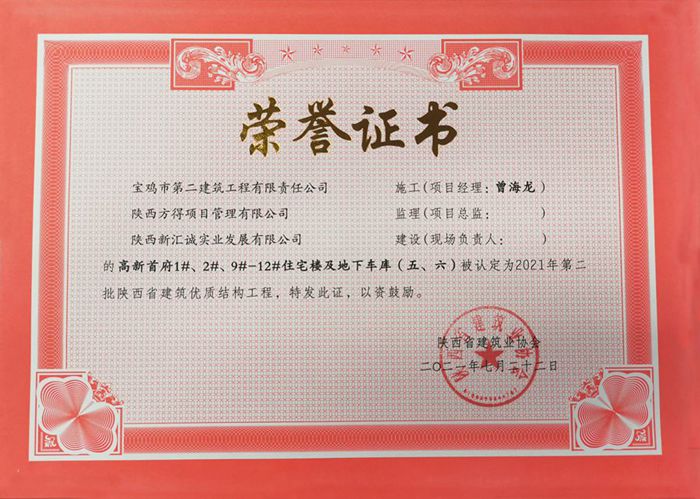 2021年度陜西省建筑優(yōu)質(zhì)結(jié)構(gòu)工程(高新首府1#、2#、9#-12#住宅樓及地下車庫(kù))